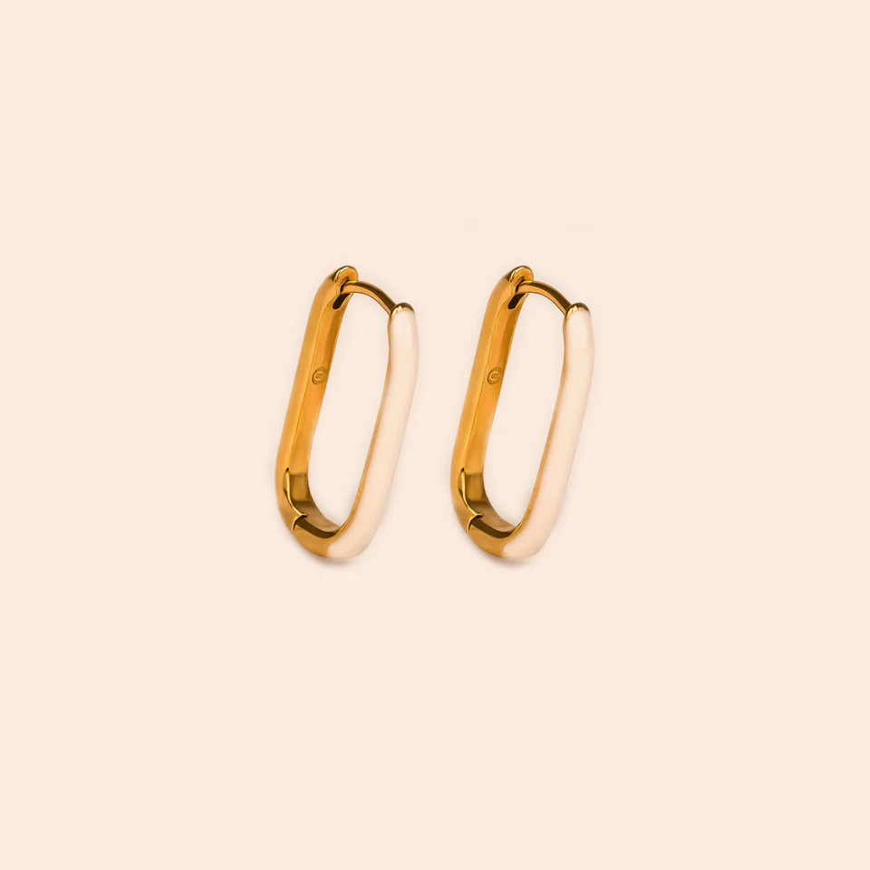 Créoles ovales allongées d’1cm de largeur et 3cm de hauteur, les boucles d’oreilles Les Gracieuses mêlant acier inoxydable et métal émaillé.