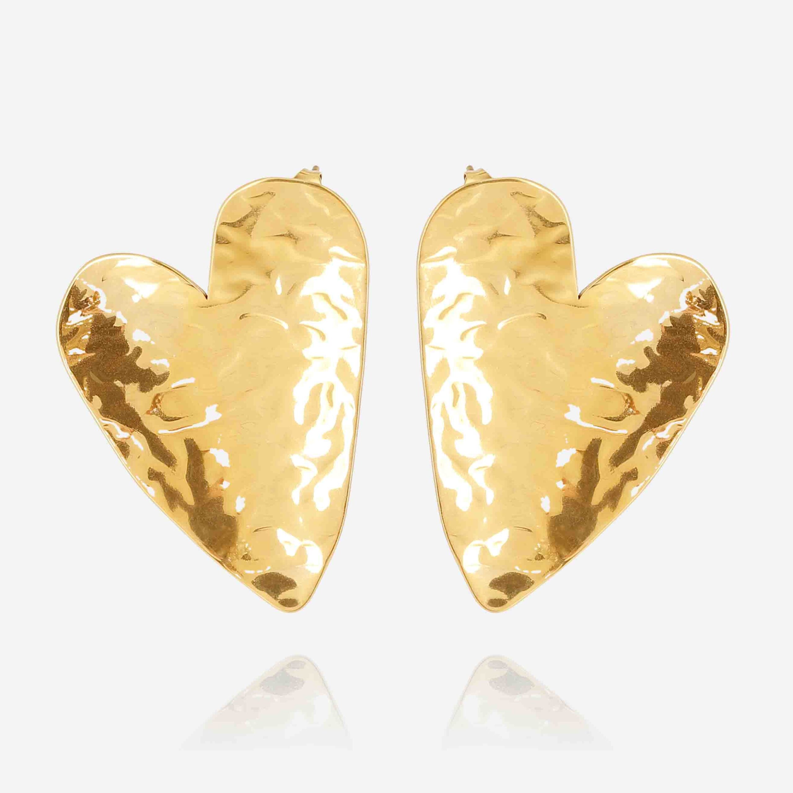 Boucles d’oreilles en acier uni ou doré à l’or fin par ionisation en forme de cœur martelé.