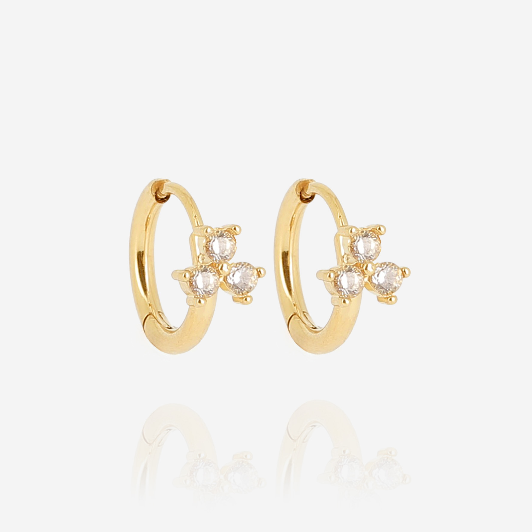 Boucles d’oreilles créoles en acier uni ou doré à l’or fin par ionisation serties d’un zirconium.