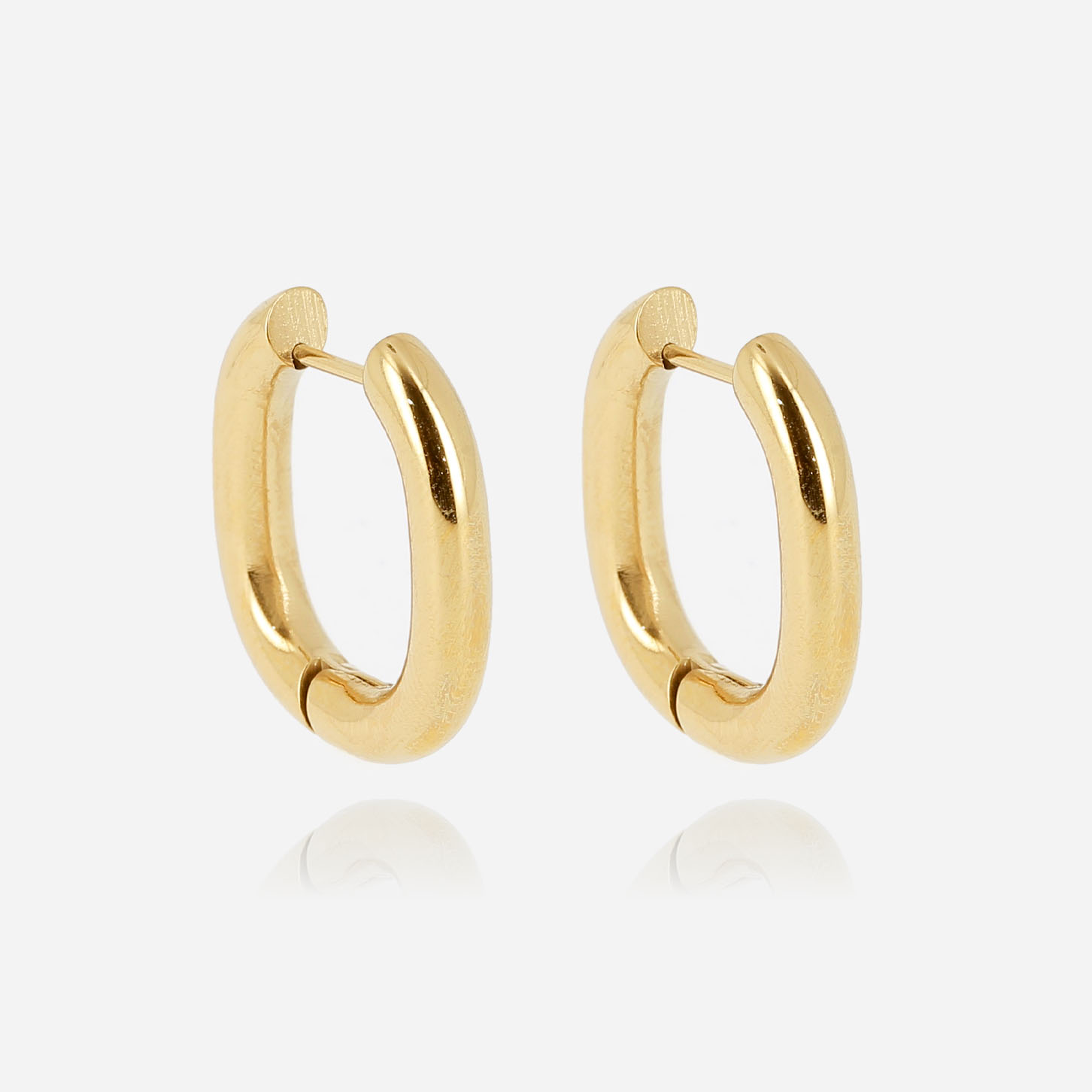 Boucles d’oreilles créoles ovales en acier uni ou doré à l’or fin par ionisation.