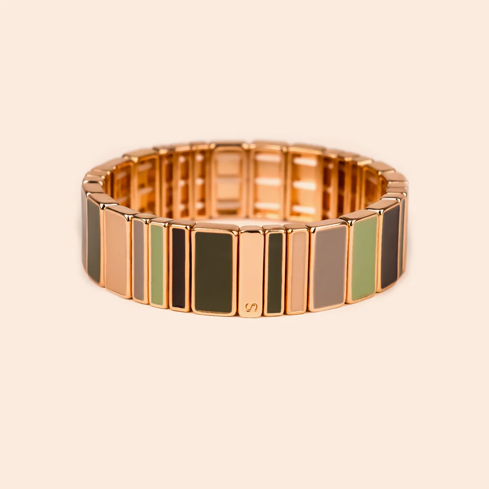Matières : métal émaillé monté sur élastique doré à l’or fin