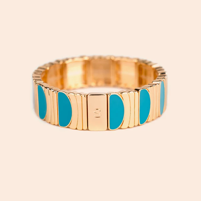 Matières : métal émaillé monté sur élastique doré à l’or fin