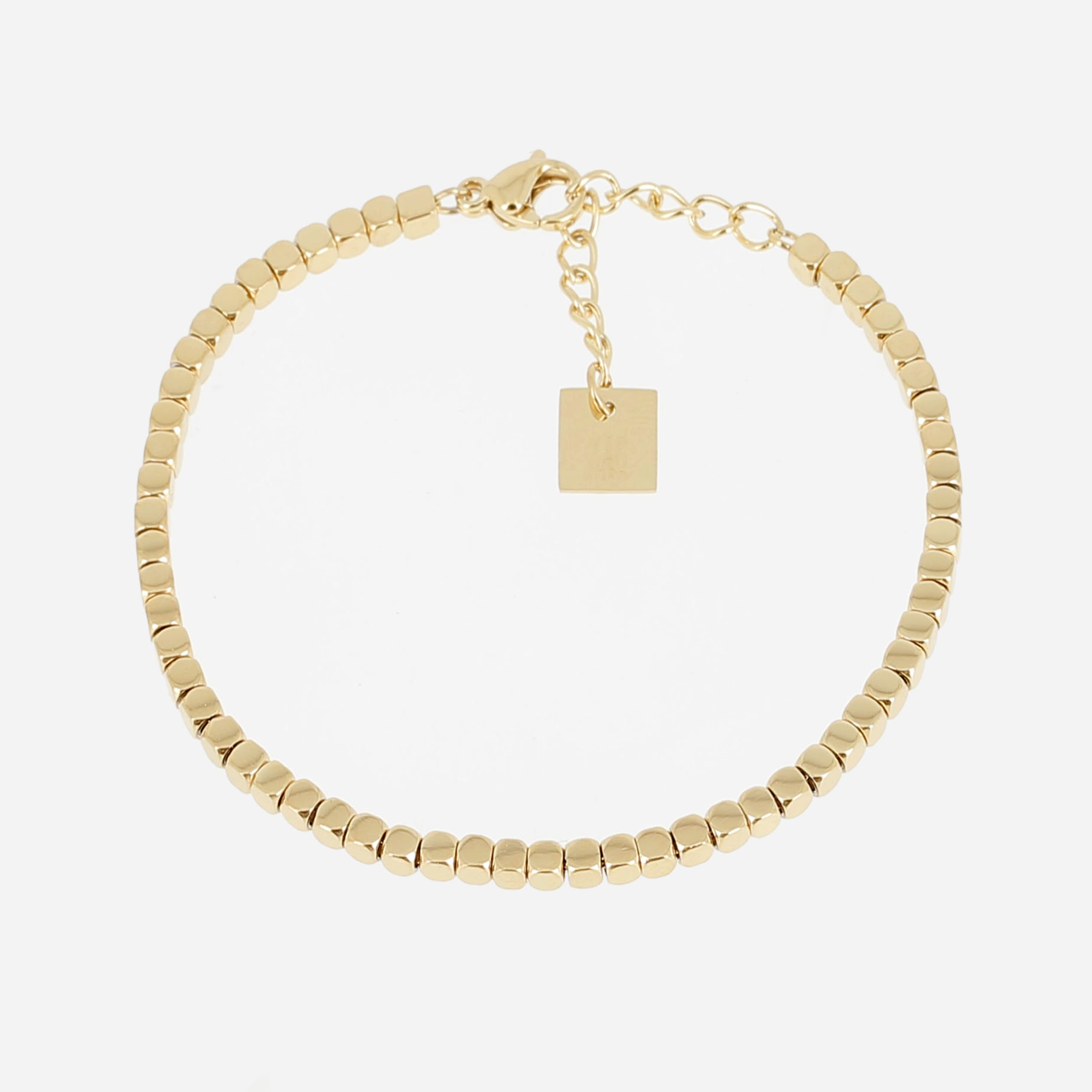 Bracelet en acier uni ou doré à l’or fin par ionisation composé de petits empiècements carrés.