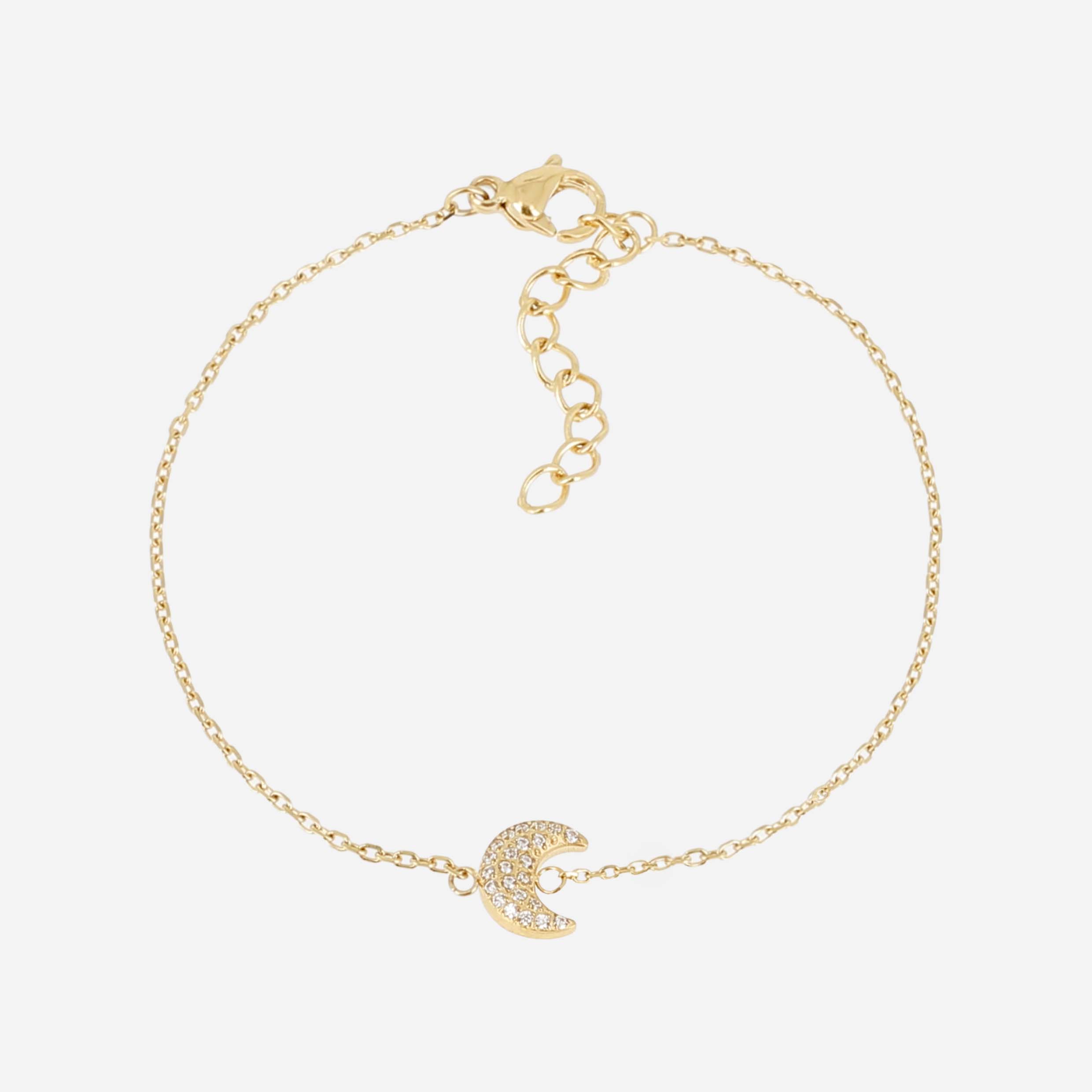 Bracelet en acier uni ou doré à l’or fin par ionisation serti d’un pendentif en forme de lune serti de zirconiums.