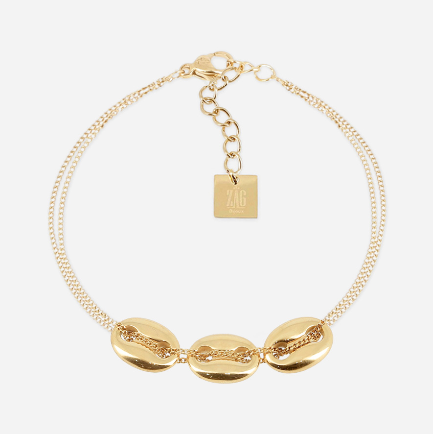 Bracelet en acier uni ou doré à l’or fin serti de 3 grains de café.