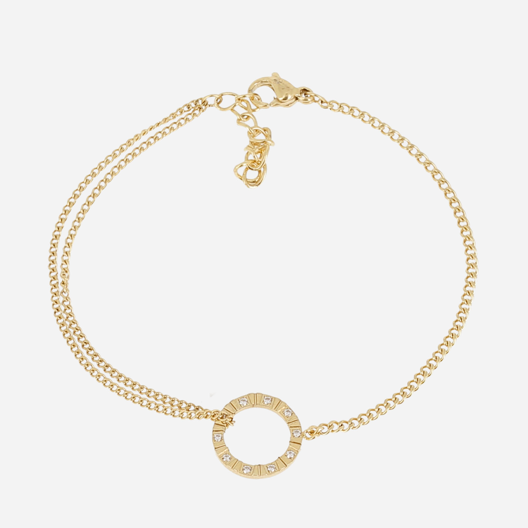 Bracelet en acier uni ou doré à l’or fin par ionisation sertis d’un anneau sur lequel sont sertis des zirconiums.