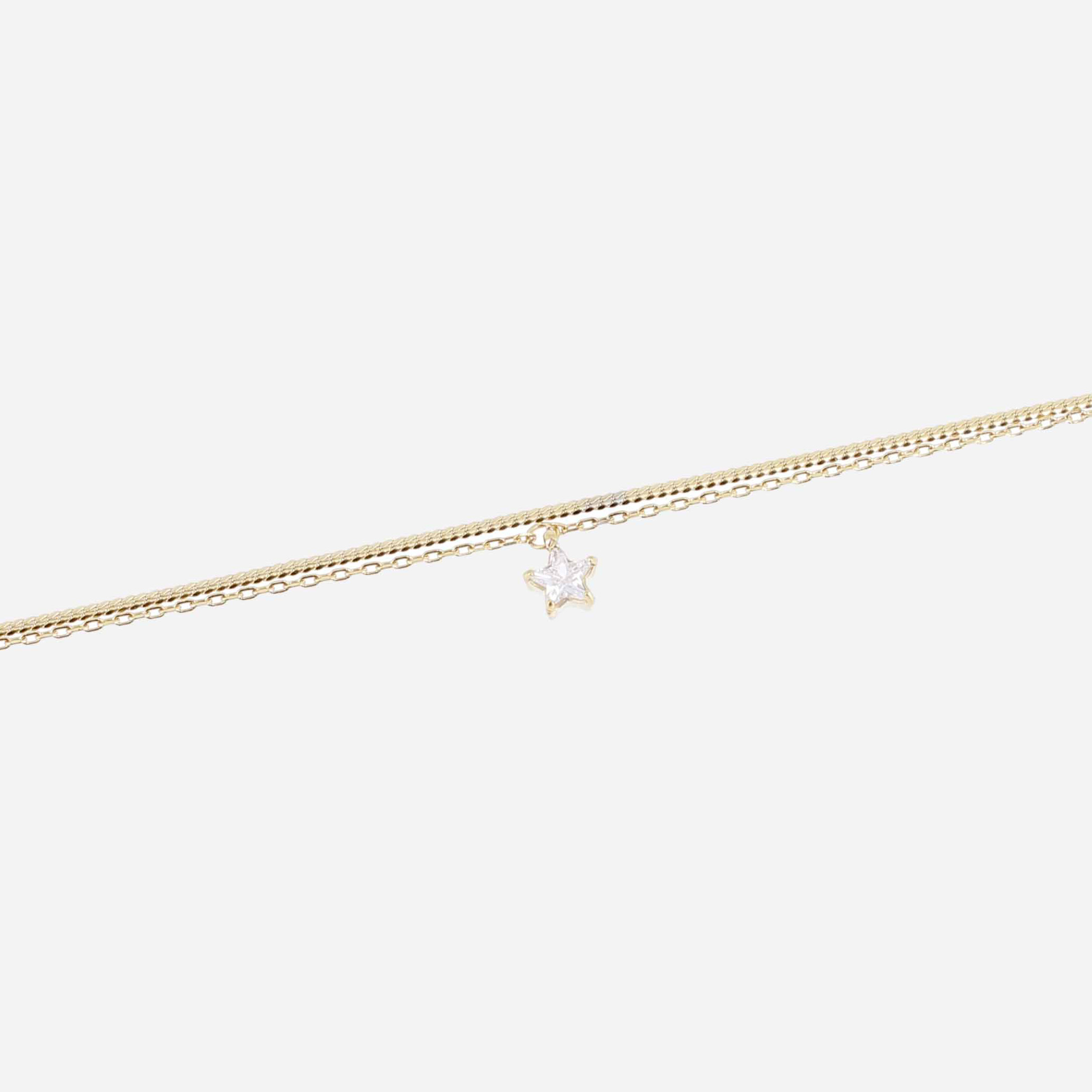 Bracelet double chaînette en acier uni ou doré à l’or fin par ionisation sur lequel est serti une étoile en zirconium.