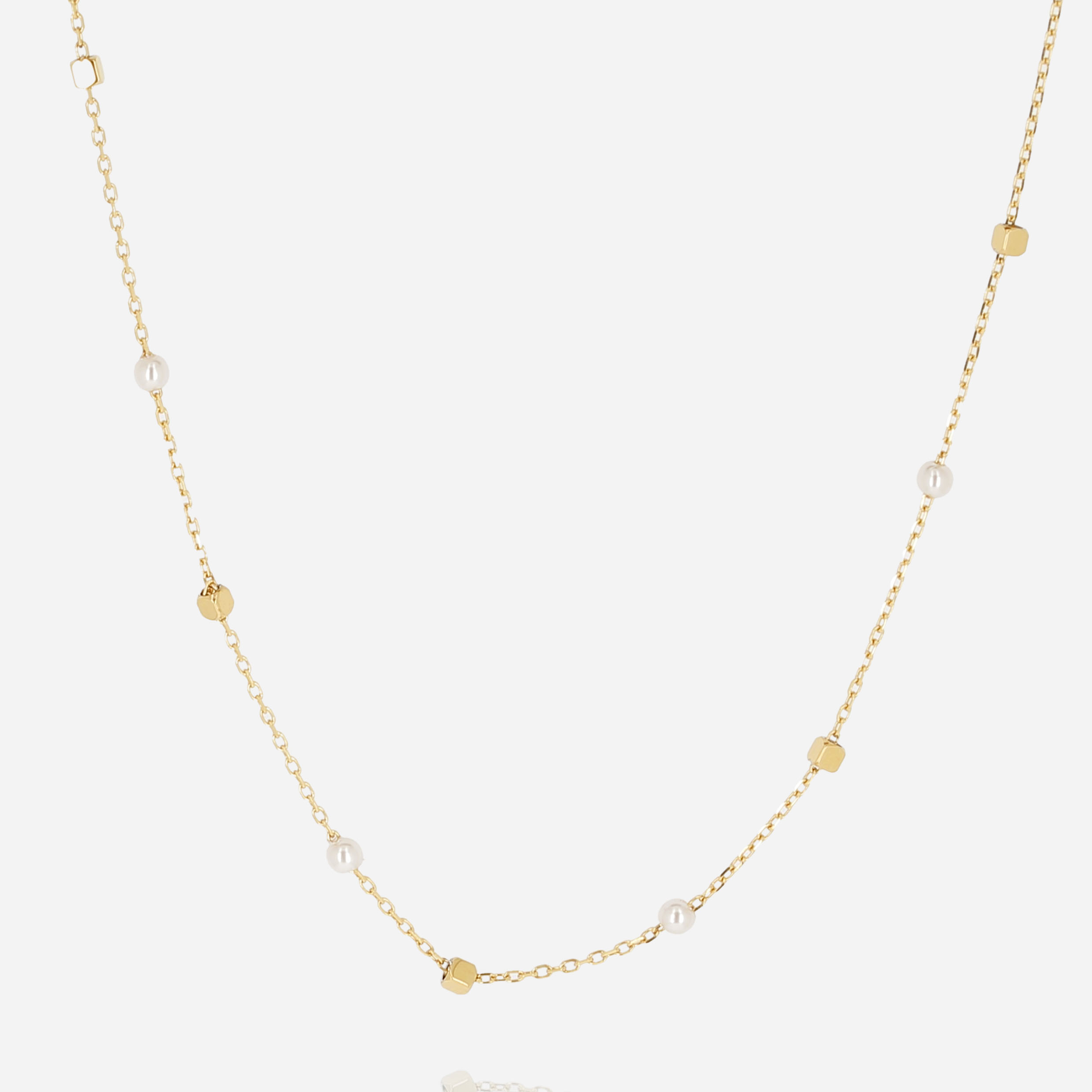 Collier en acier uni ou doré à l’or fin par ionisation serti de perles en acier et de perles.