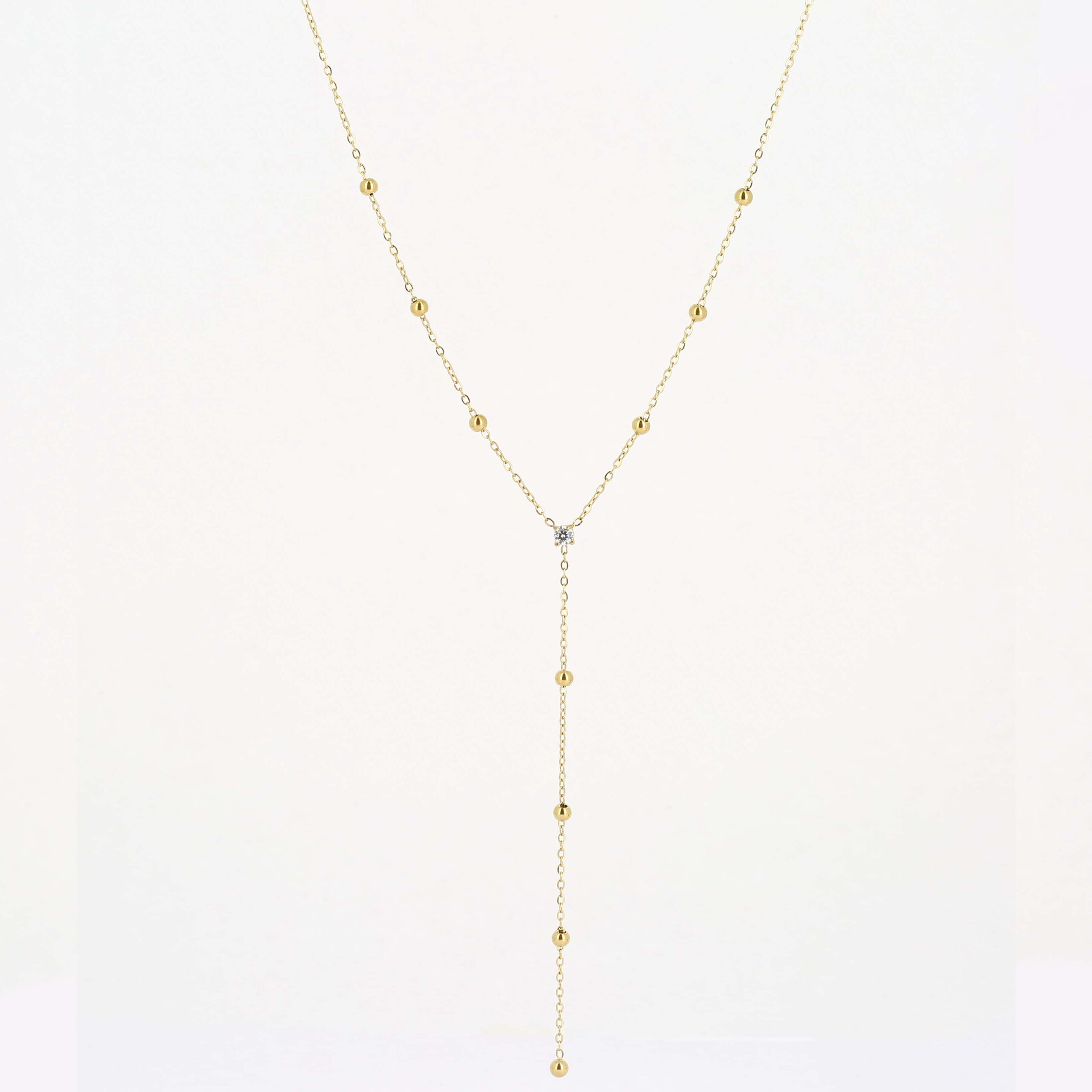 Collier en acier uni ou doré à l’or fin par ionisation sur lequel sont parsemées des petites boucles d’acier. Un zirconium est serti au centre de ce bijou raffiné, apportant de l’élégance et de la finesse à la tenue.