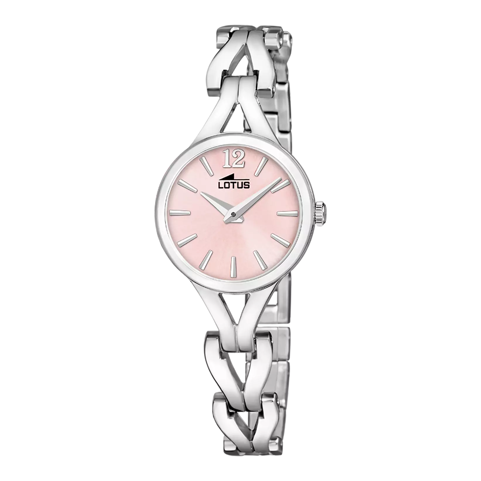 • La Lotus Old Money 19022/2 enchante avec son cadran rose clair délicat et son boîtier rond en acier inoxydable. Son bracelet en acier laqué accentue sa féminité et son élégance. La collection Old Money incarne un style soigné et intemporel, conçu pour durer.
